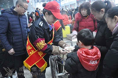 2019年2月10日,是農(nóng)歷已亥年的正月初六。由于春節(jié)假期即將結(jié)束,大量鄉(xiāng)親踏上了返崗的旅途。南充汽車客運站候車大廳內(nèi)人頭攢動,熙熙攘攘。上午9:00時左右,正是客流高峰,只見兩名身穿客運站工作制服、肩披“南充汽車客運站匡紅艷愛心班”綬帶,頭戴小紅帽的年輕站務(wù)員,推著手推車。她們就是車站“匡紅艷愛心班”第二屆班長胡燕和成員李莉,一邊慢慢行走,一邊說道:“各位旅客大家好,今天是大年初六,你們就要離開家鄉(xiāng)遠(yuǎn)行了。我們南充汽車客運站專門為大家準(zhǔn)備了水餃,給大家餞行,有需要的請告訴我們。” 一對旅客夫婦主動詢問道:“好多錢一碗?”胡燕說:“不要錢,是我們車站免費給大家提供的。”“你們車站還這么好哇,那給我們來兩碗嘛,我們從鄉(xiāng)下來,還真的沒吃早飯!焙嗪屠罾?qū)赏胨?/span>熱情地送到了這對旅客夫婦手中。旅客夫婦說:“謝謝你們,沒想到在車站又嘗到了年味。” 見此情景,一些旅客陸續(xù)聚攏到推車跟前,“阿姨!我要吃餃子。”一名小朋友走近推車喊道。“要得,阿姨給你舀!焙嗪屠罾蚰贸鲲埡锌曜,舀好一碗又一碗,送到需要的旅客手中。 “大哥,你到哪里去?”胡燕一邊忙著端水餃,一邊問一位前來的旅客。“我到貴陽,明天就要上班了,路程長,今天我想可能要餓肚子,沒想到你們還準(zhǔn)備了水餃,你們車站真好,給我留下了今年春節(jié)家鄉(xiāng)的美好印象,謝謝你們!”“不用謝,這是我們應(yīng)該做的。我們車站每年初六都要為大家煮水餃,給大家提供方便,祝你旅途愉快!焙嗷卮鸬馈!澳銈兿氲弥艿,謝謝你們!”旅客吃著熱騰騰的水餃連聲說道。 整整一個上午,胡燕和李莉送了一車又一車,直至將40斤水餃全部送完。她們看見旅客舒心地坐在候車大廳里,滋滋有味地吃著水餃,十分愉快開心。 春節(jié)期間,南充汽車客運站深入開展“情滿旅途”活動,全力做好農(nóng)民工返鄉(xiāng)返崗關(guān)愛服務(wù)工作,熱心為旅客送開水、做好事、猜謎語、搞游園等。其中,大年初一送湯圓和大年初六送水餃,是一直堅持開展的兩項愛心志愿服務(wù)活動,自2010年春運開始,連續(xù)九年堅持不懈,受到了廣大旅客及社會各界的廣泛好評。一些旅客紛紛拍照留影,在網(wǎng)絡(luò)媒體上自發(fā)傳播,產(chǎn)生了良好的社會影響。 (李曉光)