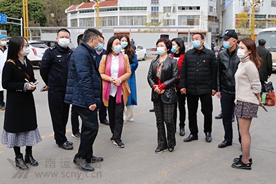 市政府副市長(zhǎng)、市應(yīng)對(duì)新型冠狀病毒肺炎疫情應(yīng)急指揮部副指揮長(zhǎng)歐陽梅(右五)深入南充汽車客運(yùn)站檢查涉外疫情防控工作。