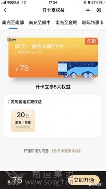 南運集團定制客運南充至閬中、南充至金城、南充至南部線路會員卡重磅來襲,還有南運出行平臺通用會員卡,讓你出行超省,更詳細的活動規(guī)則,快隨小編一起往下看。 2021年的第一份出行特惠! 為給乘客出行提供優(yōu)惠福利,由南運出行打造的定制客運付費會員產品“南充⇌南部隨行卡”“南充⇌閬中隨行卡”“南充⇌金城隨行卡”于1月1日正式上線! 什么是“隨行卡”?簡單來說,就是可以一次購買享多次出行優(yōu)惠。優(yōu)惠力度有多大?購卡后購票5折優(yōu)惠!可享5次!開卡最高可省150元! 活動時間 2021年1月1日—2021年1月31日(31天) 數量有限,先到先得! 活動規(guī)則 1.您選擇所需的定制客運線路會員卡并完成支付后,系統(tǒng)將自動派發(fā)卡中包含的所有優(yōu)惠券,您可使用優(yōu)惠券去抵扣應付訂單金額; 2.優(yōu)惠券可使用的渠道為:南運出行平臺微信小程序; 3.優(yōu)惠券自到賬后30天有效,每天限用1張優(yōu)惠券,請盡快使用; 4.定制客運線路會員卡僅限南運出行指定城際線路可用; 5.優(yōu)惠券僅可“會員卡購買本人”(支付活動的登陸賬號中,常用乘客中的本人)使用,不可替別人購買或購買后將票轉售給他人。 2021年的第二份出行特惠! 由南運出行打造的南運暢行卡也將于1月1日正式上線!特別一說,南運暢行卡適用于南運出行平臺所有定制客運線路(南部至閬中線路除外)! 活動時間 2021年1月1日-2021年1月31日(31天) 數量有限,先到先得 活動規(guī)則 1.您選擇所需的南運暢行會員卡并完成支付后,系統(tǒng)將自動派發(fā)卡中包含的所有優(yōu)惠券,您可使用優(yōu)惠券去抵扣應付訂單金額; 2.優(yōu)惠券可使用的渠道為:南運出行平臺微信小程序; 3.優(yōu)惠券自到賬后30天有效,每天限用1張優(yōu)惠券,請盡快使用; 4.南運暢行卡適用于南運出行平臺所有定制客運線路(南部至閬中線路除外)。 5.優(yōu)惠券僅可“會員卡購買本人”(支付活動的登陸賬號中,常用乘客中的本人)使用,不可替別人購買或購買后將票轉售給他人。 活動流程 1.識別下方二維碼進入“南運出行”小程序