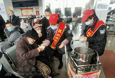 頭戴“小紅帽”、身佩大紅綬帶的匡紅艷愛(ài)心班的站務(wù)人員,不停地穿行在售票廳、候車(chē)廳。有引導(dǎo)旅客購(gòu)票上車(chē)的導(dǎo)乘人員,有在愛(ài)心驛站為旅客不厭其煩耐心解答的咨詢(xún)?nèi)藛T,有在車(chē)站候車(chē)廳為旅客送鮮開(kāi)水的服務(wù)人員,有滿(mǎn)腔熱情地扶老攜幼的青年志愿者。上午9點(diǎn)多鐘,“小紅帽”站務(wù)人員又為一早從鄉(xiāng)村來(lái)南充乘車(chē)的農(nóng)民工兄弟姐妹們送來(lái)了一碗又一碗的熱氣騰騰的“愛(ài)心餃子”,候車(chē)廳沸騰了起來(lái),有的農(nóng)民工說(shuō):“謝謝了!”有一位旅客情不自禁地伸出大拇指給予點(diǎn)贊!有的年輕小伙子和靚妹興致勃勃地拿起手機(jī)拍下了這一溫馨的時(shí)刻,發(fā)到微信朋友圈,讓大家分享這一瞬間的祝福和快樂(lè)。