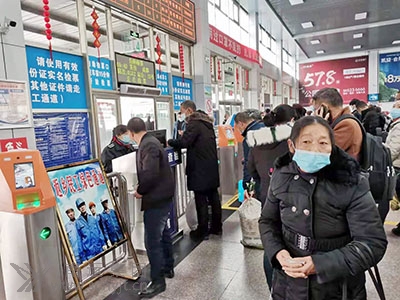 與以往熙熙攘攘、摩肩接踵的景象不同,空曠的售票大廳里,返崗的旅客掃碼、測(cè)溫、保持間距,喧囂不再,但一切井然有序。3個(gè)售票窗口有三三兩兩的旅客在購(gòu)票。車(chē)站網(wǎng)上購(gòu)票的旅客已增加到60%。在1名“小紅帽”站務(wù)人員的引導(dǎo)下,旅客們?cè)?0臺(tái)自助(售)取票機(jī)前便捷的。ㄙ(gòu))票。另1個(gè)廣東、深圳、汕頭、福建、溫州的售票窗口基本上無(wú)人問(wèn)津。為了方便農(nóng)民工回家返崗,車(chē)站專(zhuān)門(mén)設(shè)置了農(nóng)民工服務(wù)臺(tái)、農(nóng)民工優(yōu)先售票窗口和農(nóng)民工檢票進(jìn)站綠色通道,車(chē)站工作人員熱情為農(nóng)民工提供指路、購(gòu)票、咨詢(xún)、搬運(yùn)行李、維護(hù)秩序等服務(wù),深受農(nóng)民工歡迎。
