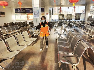 2月17日,農(nóng)歷正月初六,是春節(jié)小長(zhǎng)假的最后一天。藍(lán)天白云,晴空萬(wàn)里,春風(fēng)習(xí)習(xí)。抗擊疫情就地過(guò)年中的冷清春運(yùn)年味仍濃。南充汽車(chē)客運(yùn)站候車(chē)大廳外入口門(mén)廳波瀾起伏的天藍(lán)色陽(yáng)光膜下,寬大氣派的電子顯示屏上滾動(dòng)播放著“全國(guó)道路旅客運(yùn)輸一級(jí)企業(yè)——南運(yùn)集團(tuán)給全市人民和廣大旅客拜年!恭祝新春快樂(lè)、身體健康、萬(wàn)事如意、闔家歡樂(lè)!”“歡迎返鄉(xiāng)過(guò)年的兄弟姐妹平安歸來(lái)!”的紅色大字橫幅特別醒目,歡度佳節(jié)的5個(gè)大紅燈籠和一排排小燈籠高高掛起,讓旅客們感受到濃濃的年味。候車(chē)大廳內(nèi)懸掛著大紅燈籠和大紅中國(guó)結(jié),“關(guān)愛(ài)農(nóng)民工,攜手創(chuàng)繁榮”和“佩戴口罩是阻斷病毒傳播的有效手段”的紅色橫幅在電子顯示屏上不斷播放,使旅客們倍感暖意融融。根據(jù)新冠肺炎疫情防控工作的需要,候車(chē)大廳進(jìn)站口設(shè)置了不銹鋼欄桿通道,改造了站前廣場(chǎng)和車(chē)輛進(jìn)站口,重新構(gòu)建了磚混結(jié)構(gòu)崗?fù)、混泥土座鋼結(jié)構(gòu)圍墻、站徽標(biāo)門(mén)頭柱、隔離活動(dòng)欄桿、固定隔離護(hù)欄,使下客區(qū)旅客統(tǒng)一從新設(shè)置的唯一的出口處出站,使疫情防控和安全管理更加規(guī)范和完善。
