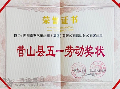 南運(yùn)集團(tuán)營山分公司客運(yùn)科榮獲“營山縣五一勞動獎狀”