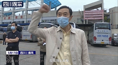 南運(yùn)集團(tuán)大巴馳援廣安鄰水發(fā)車出站