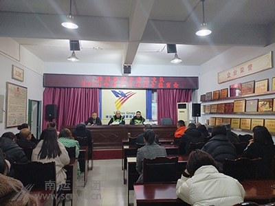 四川高速交警五支隊(duì)二大隊(duì)教導(dǎo)員趙國志(主席臺中)在高速客運(yùn)分公司講春運(yùn)安全