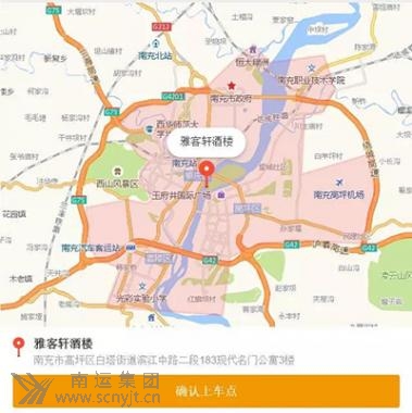 南充和岳池城區(qū)均可享受上門接送服務(wù),但具體請以訂車時顯示的接送范圍為準哦!粉色區(qū)域為接送范圍。
